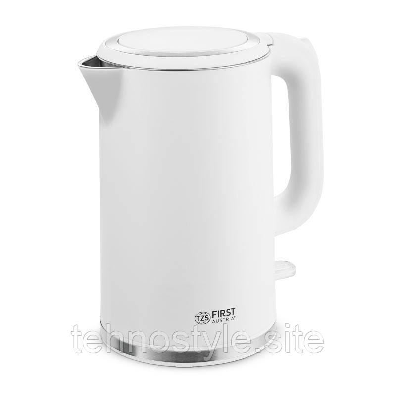 Електрочайник FIRST FA-5407-2-WI, 1.7л, 2200Вт, фарбована сталь, подвійні стінки корпусу, білий