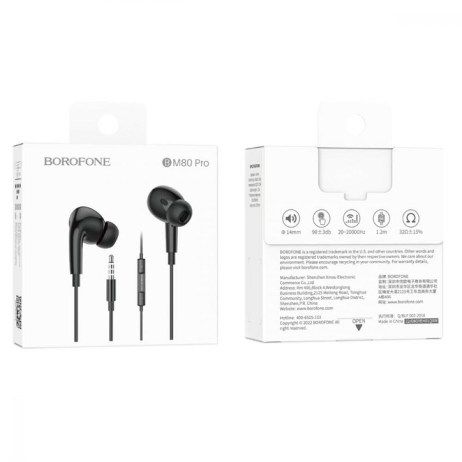 Гарнітура дротова BOROFONE BM80 Pro Elegant wire-controlled earphones with microphone Black