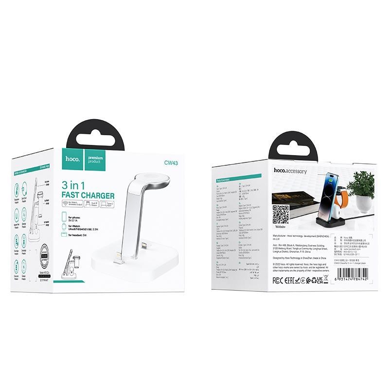 Бездротовий зарядний пристрій HOCO CW43 Graceful 3-in-1 charger White