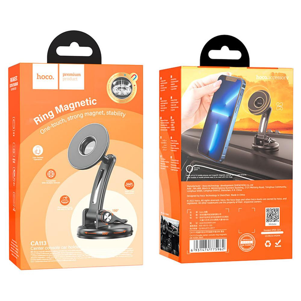 Автотримач для мобільного HOCO CA113 Excelle center console ring magnetic car holder Black
