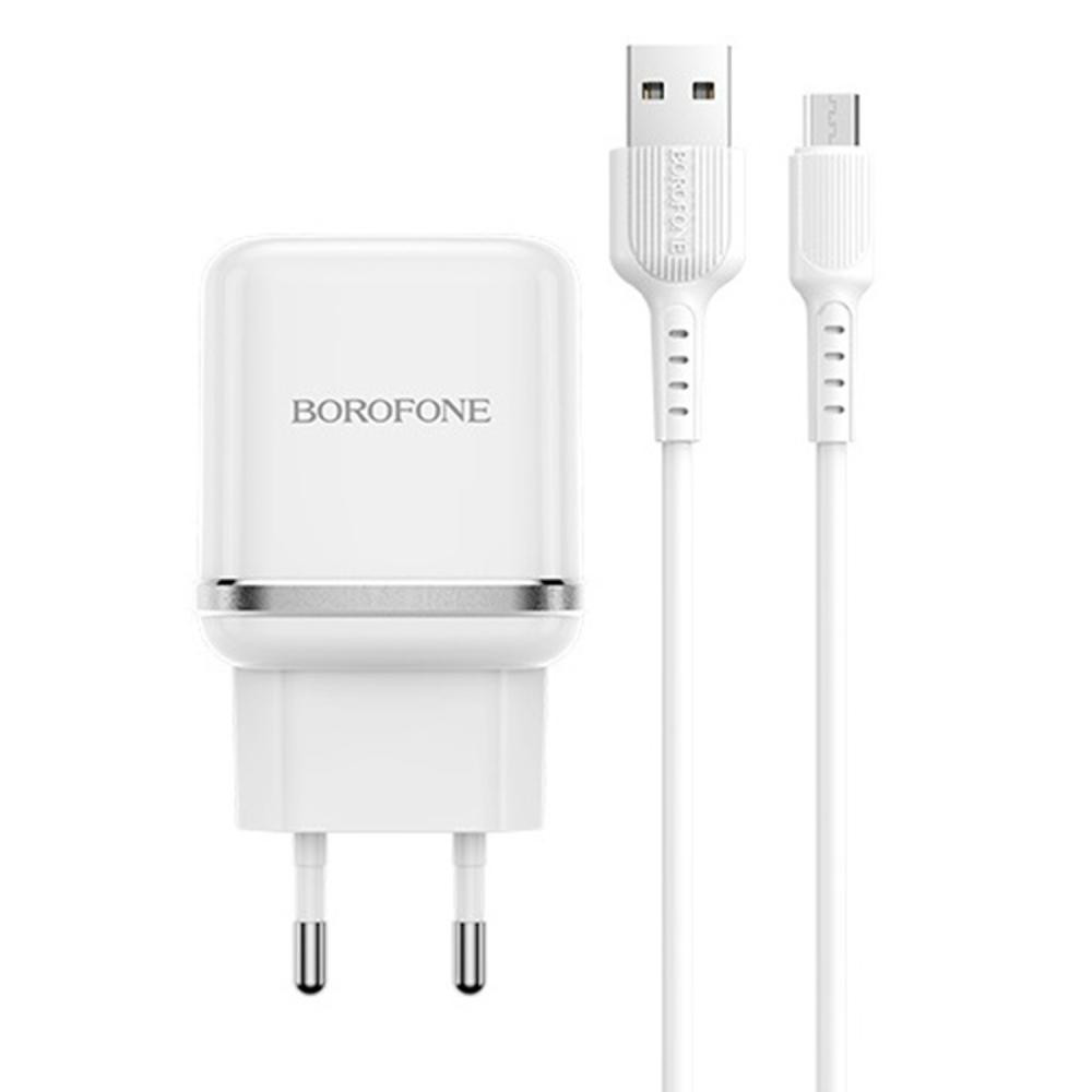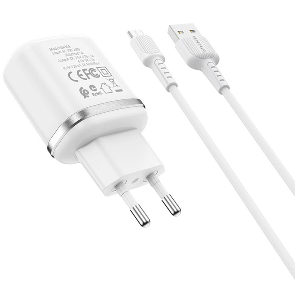 Мережевий зарядний пристрій BOROFONE BA36A High speed single port QC3.0 charger set(Micro) White