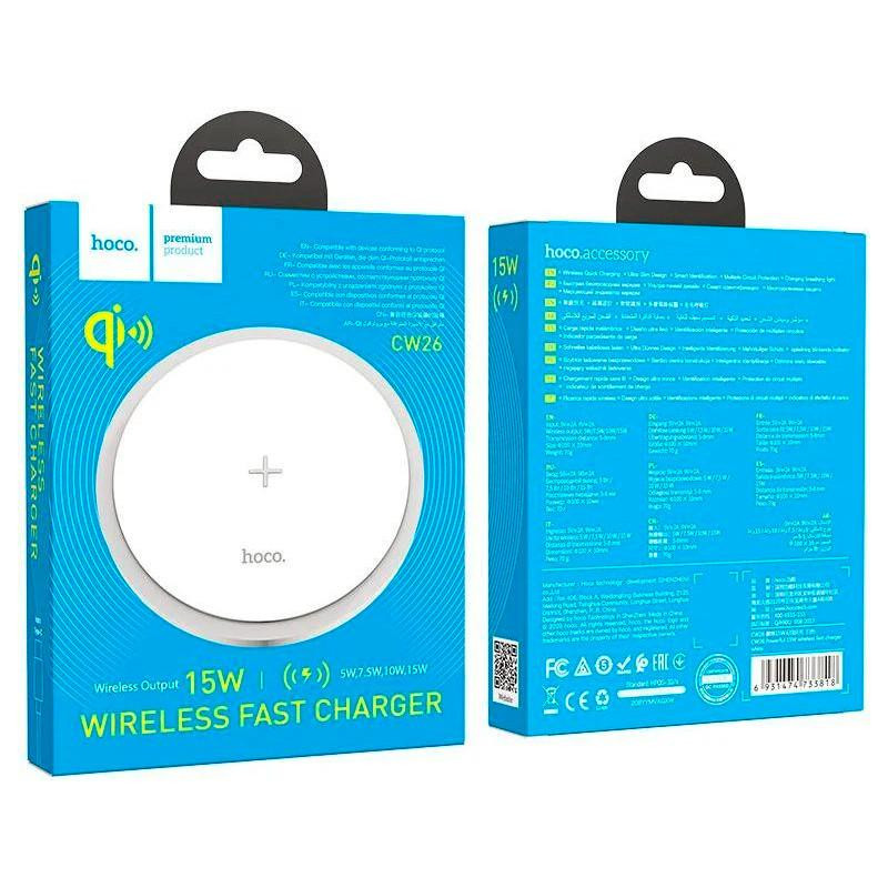 Бездротовий зарядний пристрій HOCO CW26 Powerful 15W wireless fast charger White