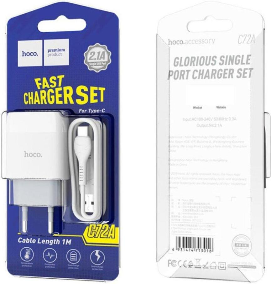 Мережевий зарядний пристрій HOCO C72A Glorious single port charger set(Type-C) White