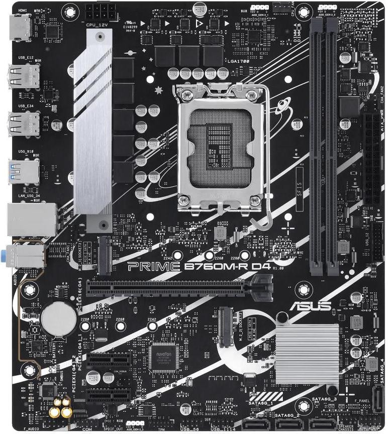 Материнcька плата ASUS PRIME B760M-R D4 Socket 1700 B760 2*DDR4 M.2 HDMI mATX (90MB1HA0-M0EAY0)