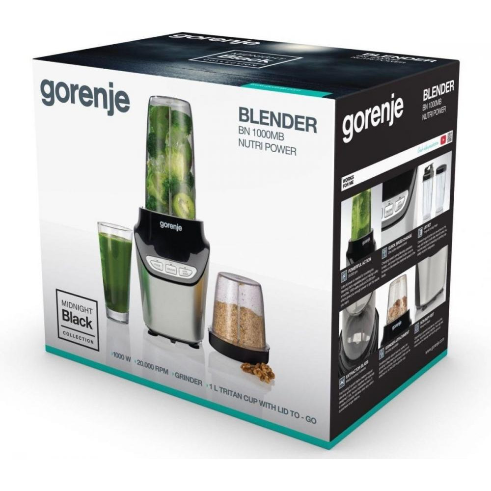 Блендер Gorenje стаціонарний 1000Вт, чаша-1000мл, подрібнювач, чорний