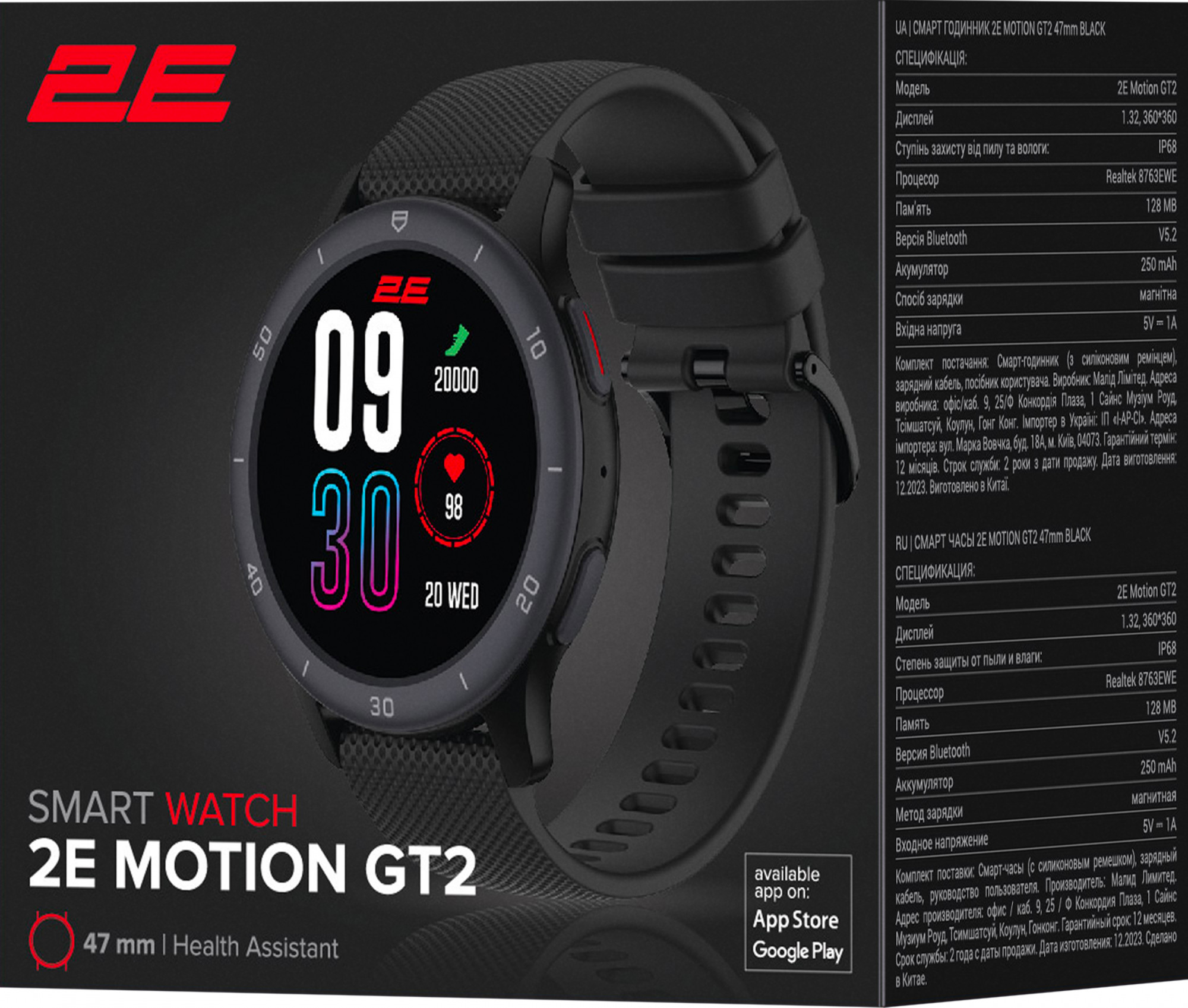 Смарт годинник 2E Motion GT2 47mm, Black