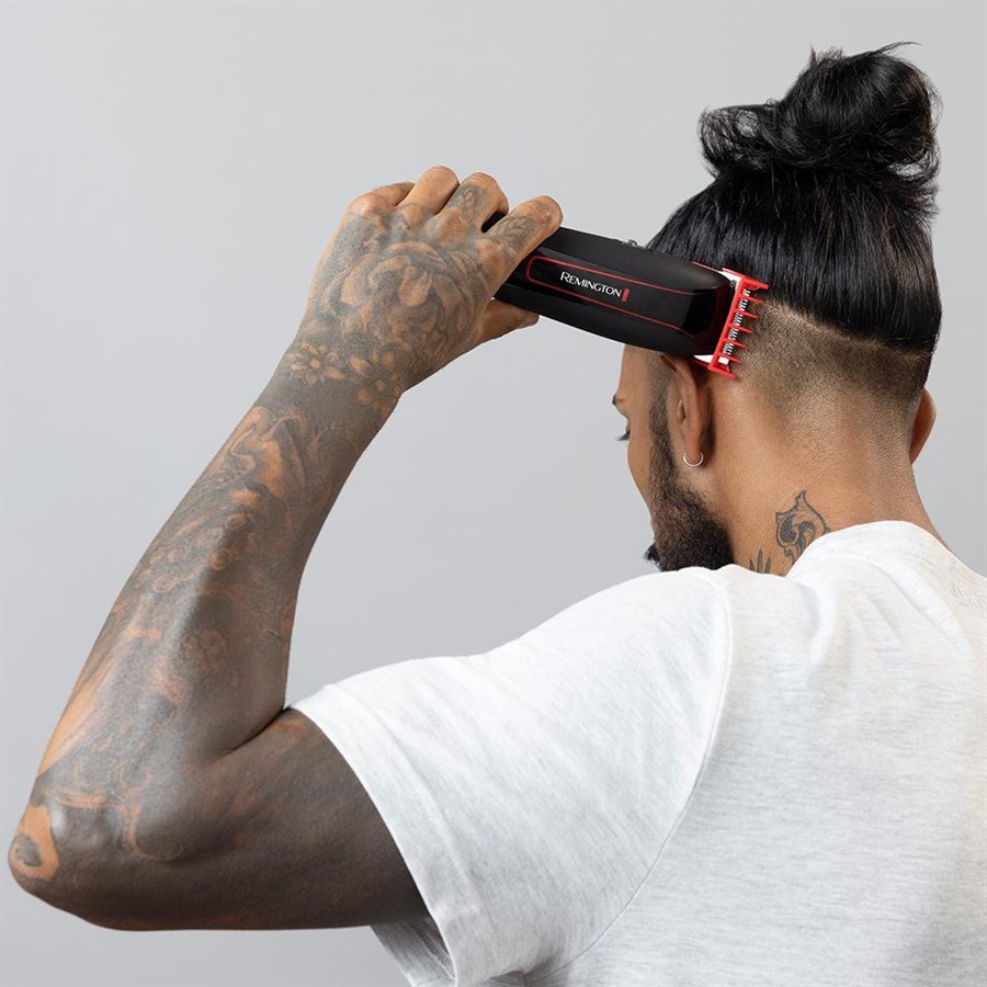 Машинка для стрижки Remington Easy Fade Pro, мережа+акум., роторний мотор, насадок-19, кейс, аксесуари в компл., червоно-чорний