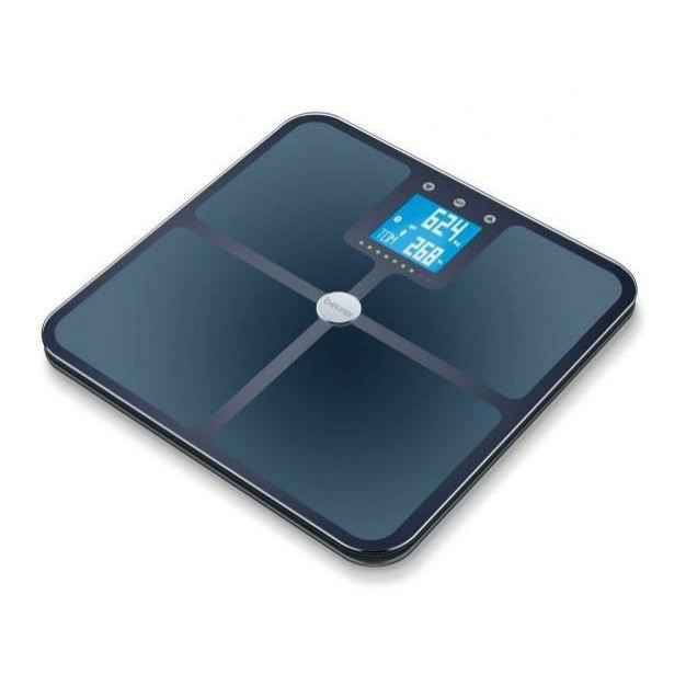 Ваги Beurer підлогові, 180кг, підкл. до смартфону, сенс. керув., аналіз тіла, AAAх4 в комплекті, скло, чорний