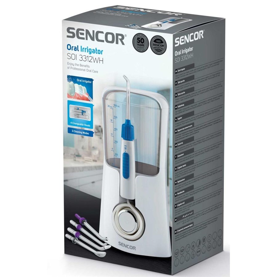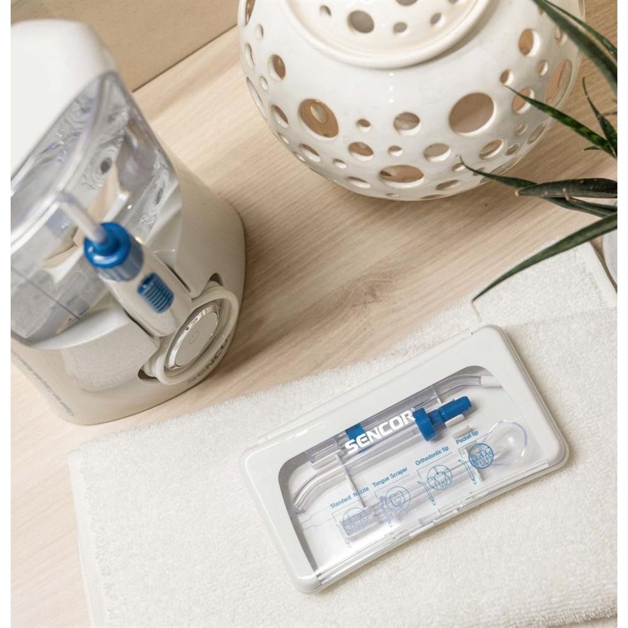Іригатор Sencor стаціонарний, чаша 600 мл, від мережі , 5 насадки, білий