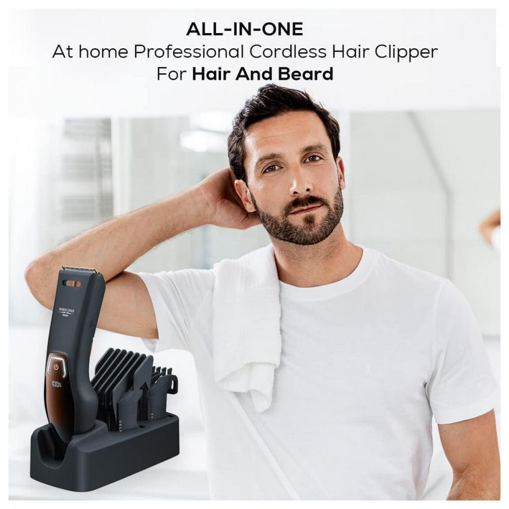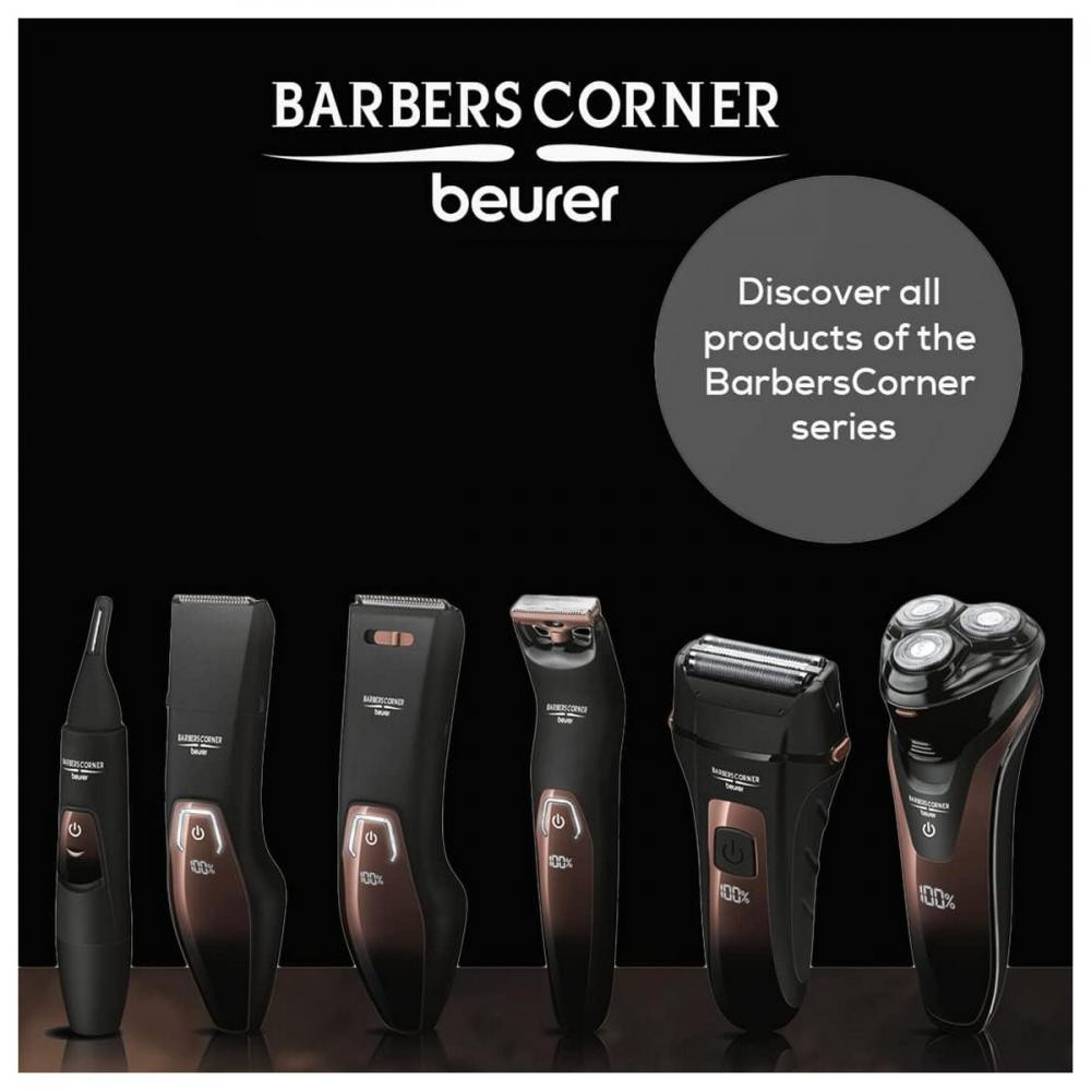 Машинка для стрижки Beurer, мережа+акум., насадок-2, кейс,ножиці, гребінець в компл, титан.напил., чорно-бронзовий