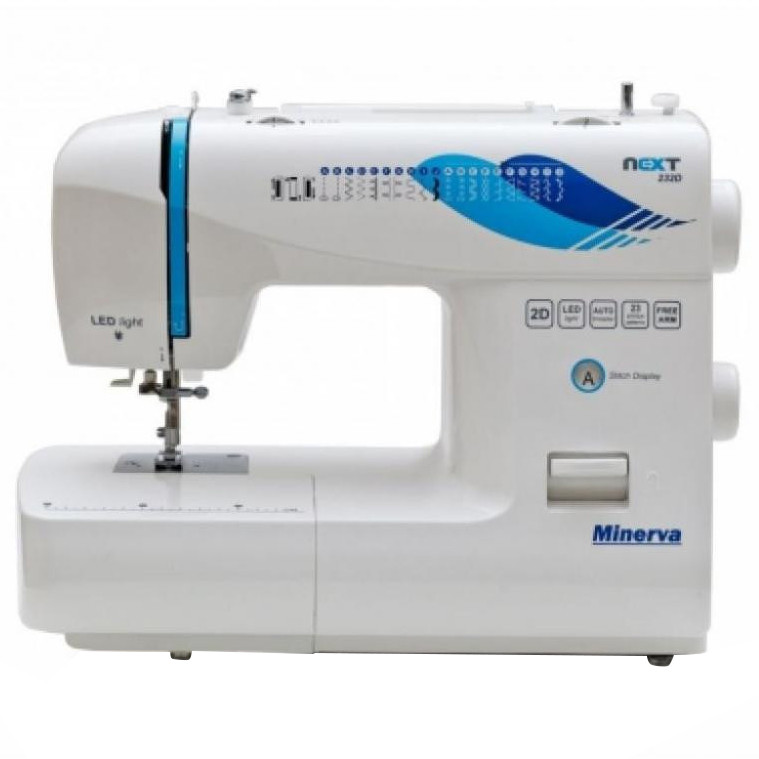 Швейна машина МINERVA NEXT 232D, електромех., 85Вт, 23 шв.оп., петля напівавтомат, білий + синій