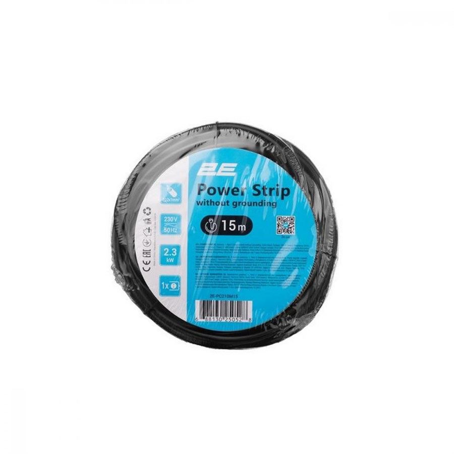 Подовжувач мережевий 2E 1хТип C, 2х1мм кв, 10A, 15м, чорний