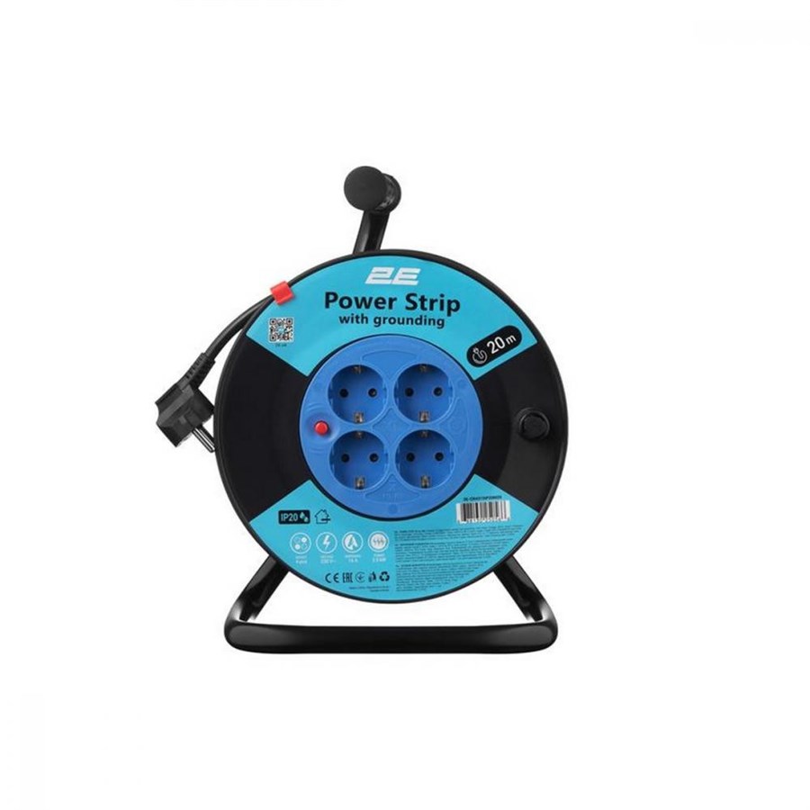 Подовжувач мережевий 2E 4хТип F, 3х1.5мм кв, 16A, на котушці, 20м, чорно-синій