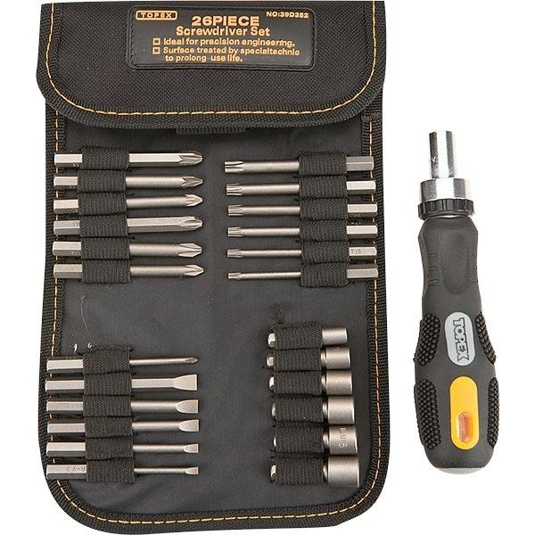 Біти TOPEX, набір 26шт, 1/4, бітотримач, торцеві головки 6шт, SL,PH,PZ,T, CrV