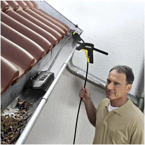 Набір для прочищення жолобів і труб працює сам по собі - завдяки високому тиску. Він легко очищає ві