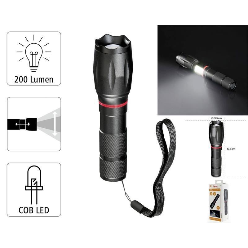 Ліхтар ручний на батарейках Hama SOLID PRO, AAAx3, 200лм, 5Вт, LED, чорний