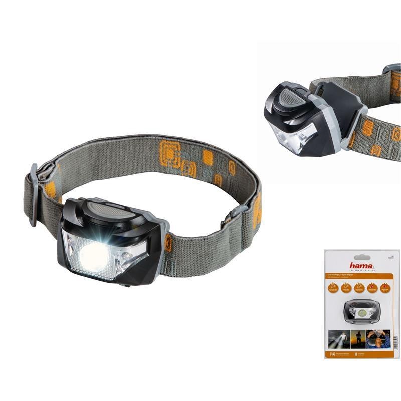 Ліхтар налобний на батарейках Hama H-160, AAAx3, 160лм, LED, 5 функції освітлення, чорно-сірий