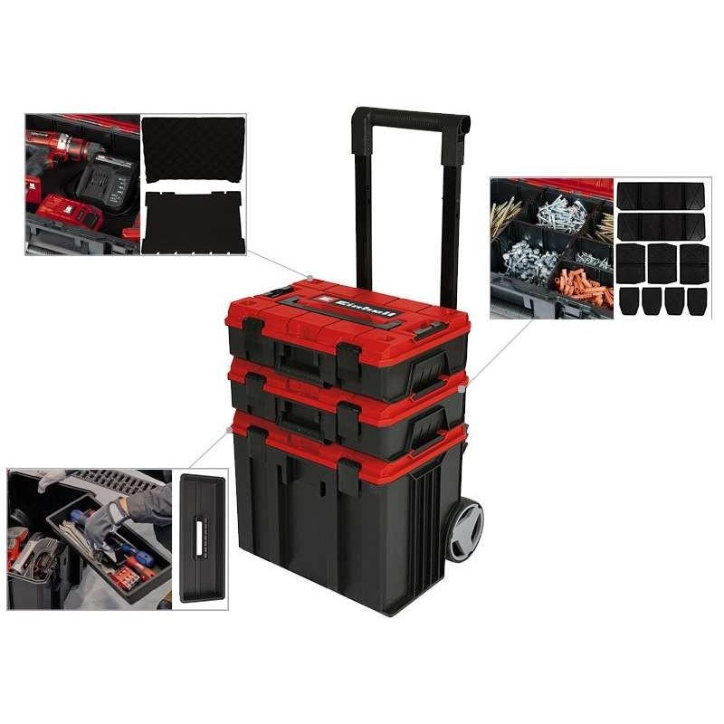 Модульна система для інструменту Einhell E-Case Tower, на коліщатках, 3 ящики модуля, 64.5х48х42.5см