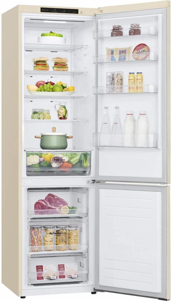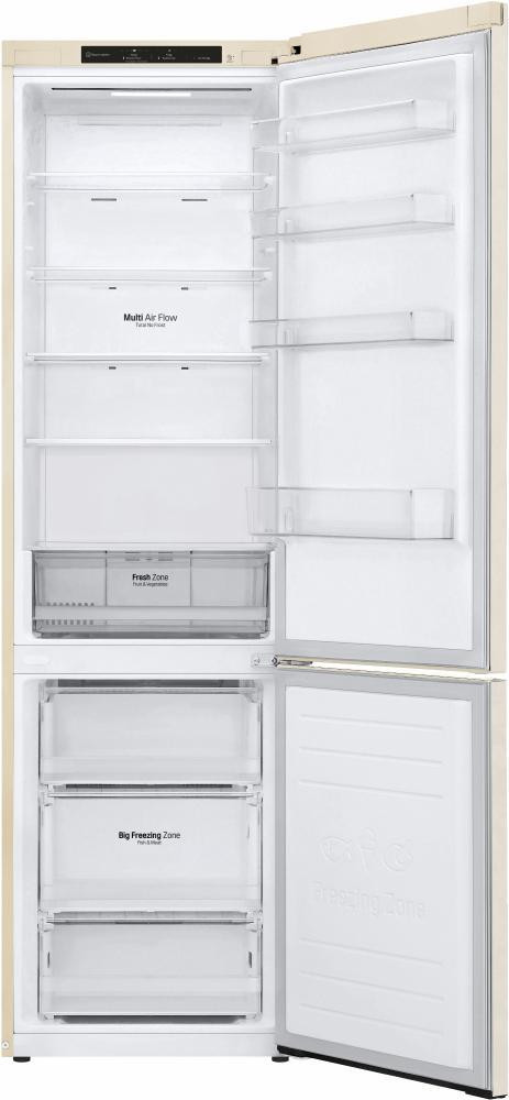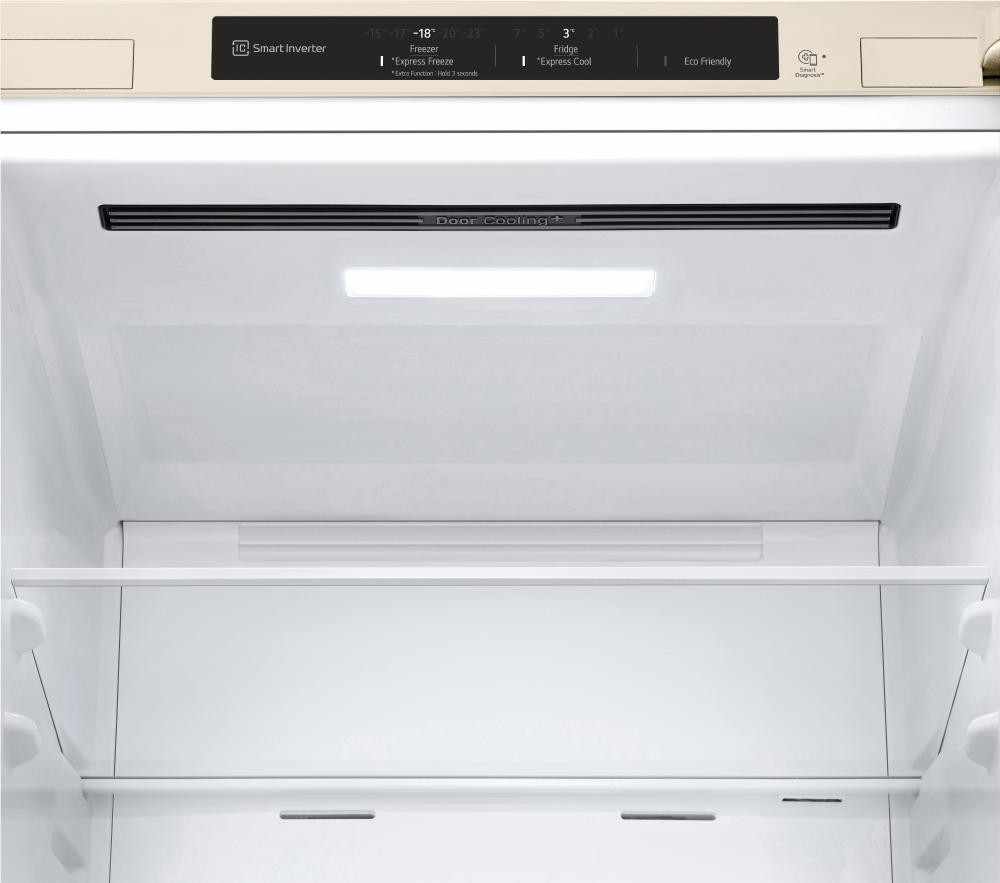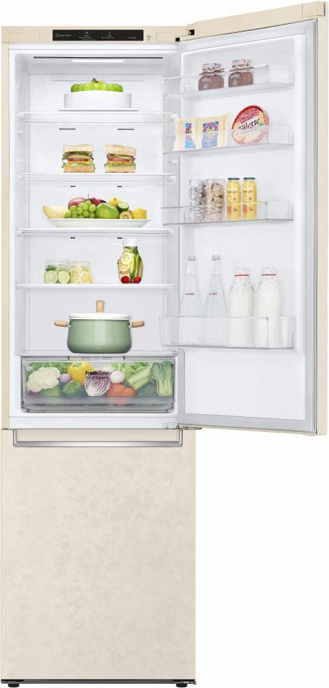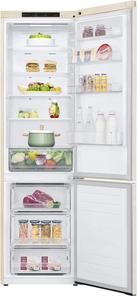 Холодильник LG з нижн. мороз., 203x60х68, холод.відд.-277л, мороз.відд.-107л, 2дв., А+, NF, інв., диспл внутр., зона св-ті, бежевий