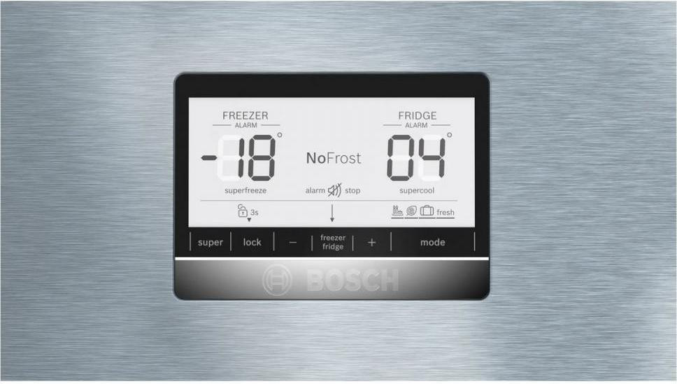 Холодильник Bosch з нижн. мороз., 186x80x86, xолод.відд.-479л, мороз.відд.-140л, 2дв., А++, NF, дисплей, нерж