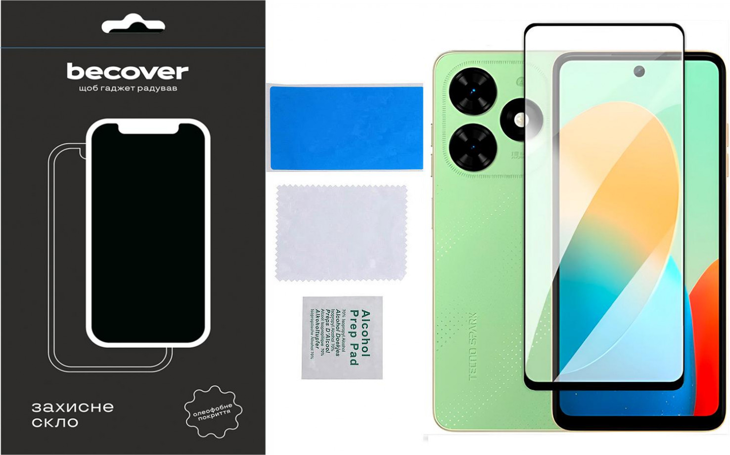 захисне скло, волога серветка, суха серветка