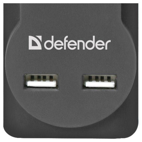 Мережевий фільтр 5,0м Defender DFS 755, 5 розеток, 2xUSB, 2.1A