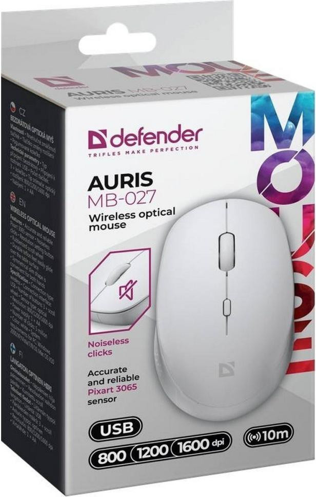 Мишка бездротова, Defender Auris MB-027, 1600dpi, 3 кнопки, White