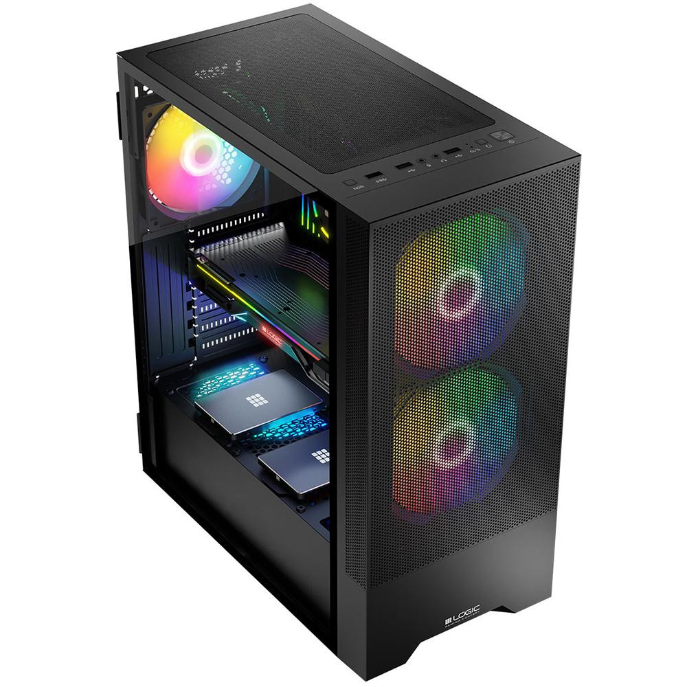 Корпус без БЖ, LogicConcept ARYA MESH+GLASS ARGB, 2x140 мм + 1x120 мм, ATX, чорний