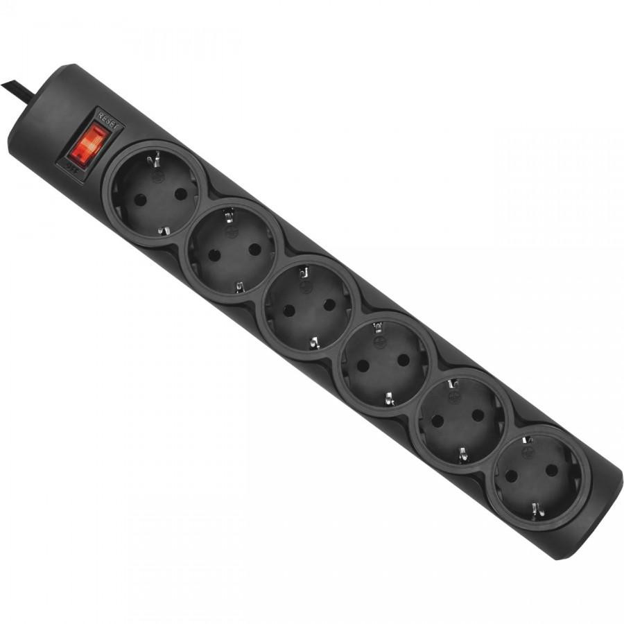 Мережевий фільтр 5,0м Defender DFS 155, чорний, 6 розеток, з вимикачем
