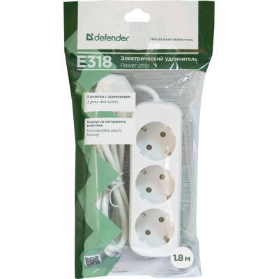 Мережевий фільтр 1.8м Defender E318, 3 розетки, з заземленням