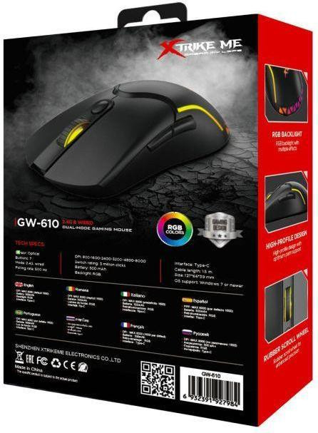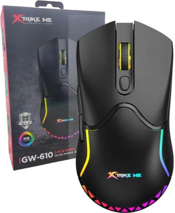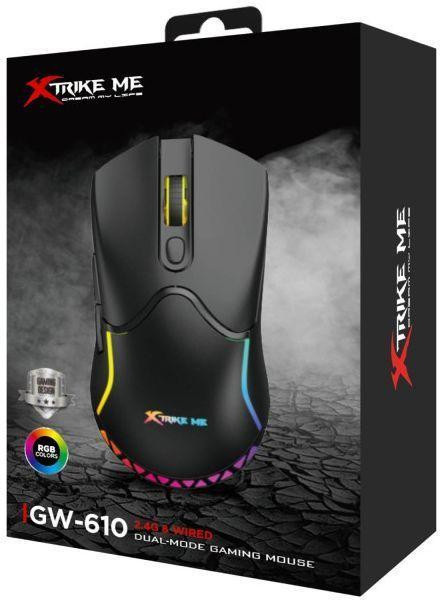 Мишка бездротова, XTRIKE ME GW-610, ігрова, 8000dpi, 7 кнопок, RGB, Black