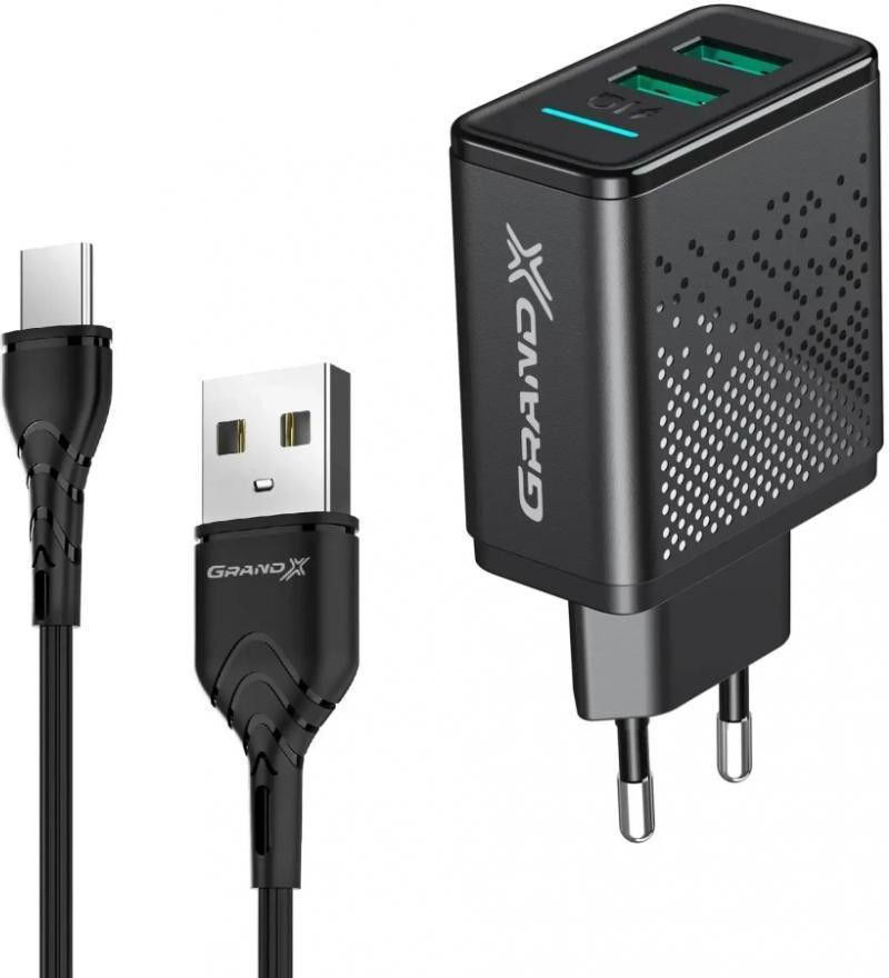 МЗП Grand-X CH-60T 2USB 5V 3,1A с кабелем Type-C