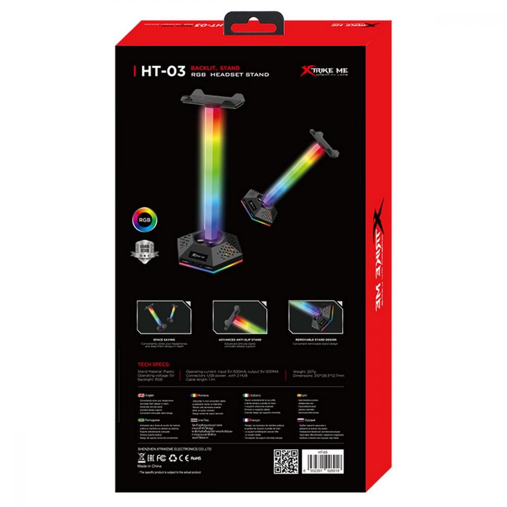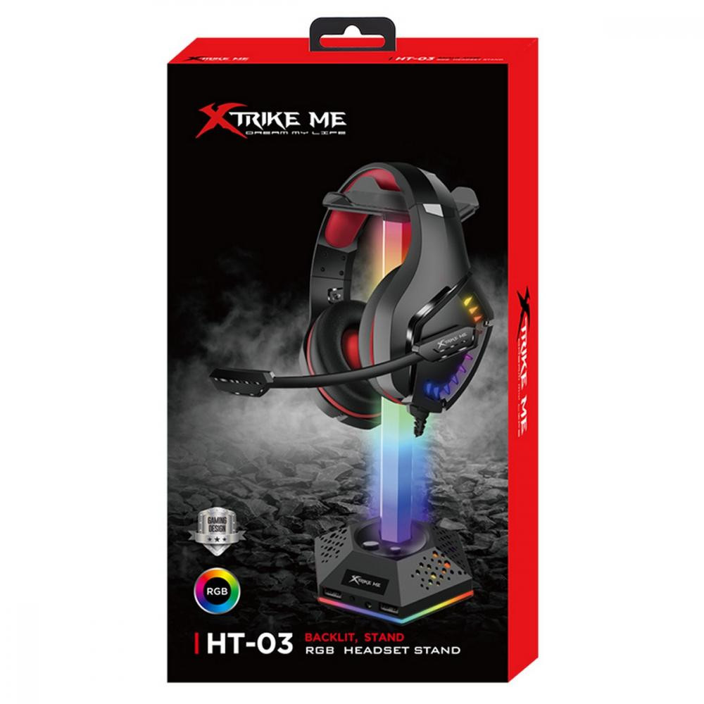 Підставка для гарнітури XTRIKE ME RGB 2xUSB2.0 HUB, USB кабель 1,9м, вlack