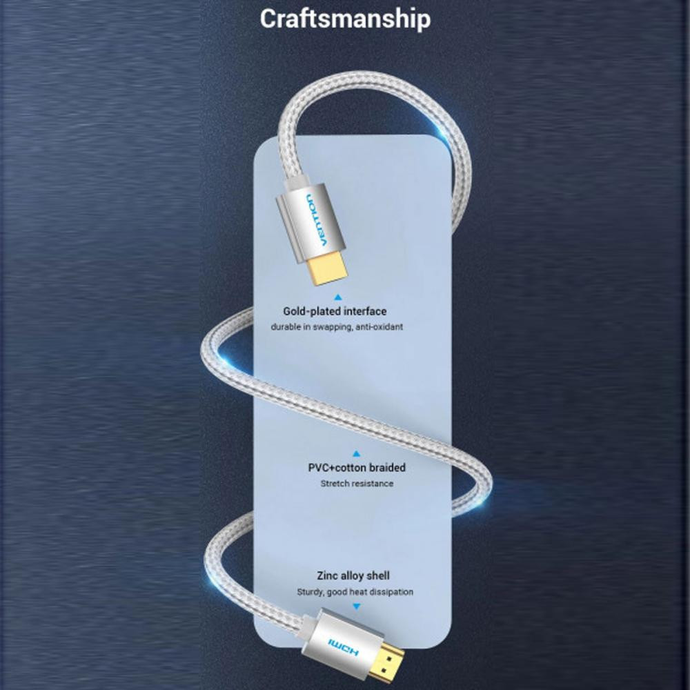 Кабель Vention HDMI,15.0 м, V2.0, 4K обплетення, Silver Metal Type