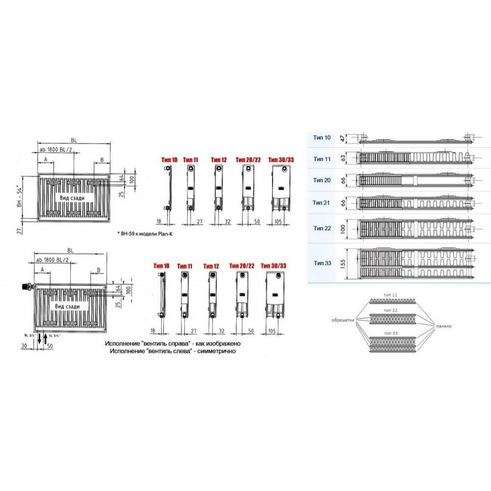 Тип панельного радіатора (кількості пластин)