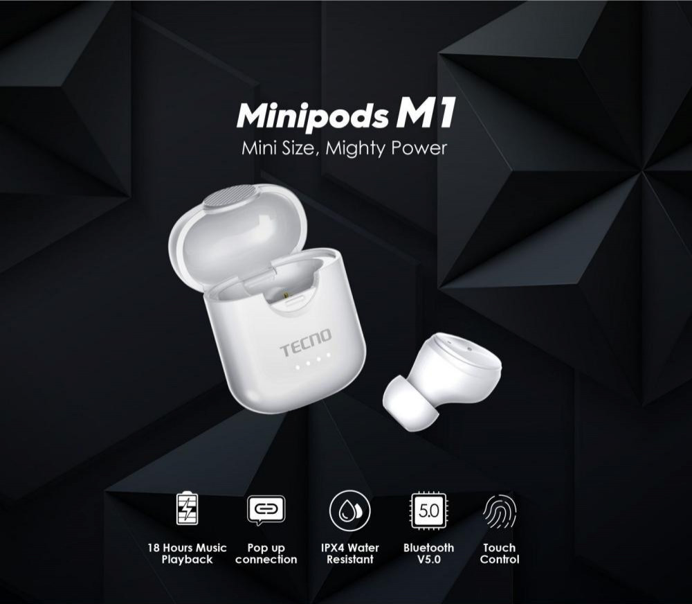 Моно Гарнітура бездротова TECNO Minipods M1 White