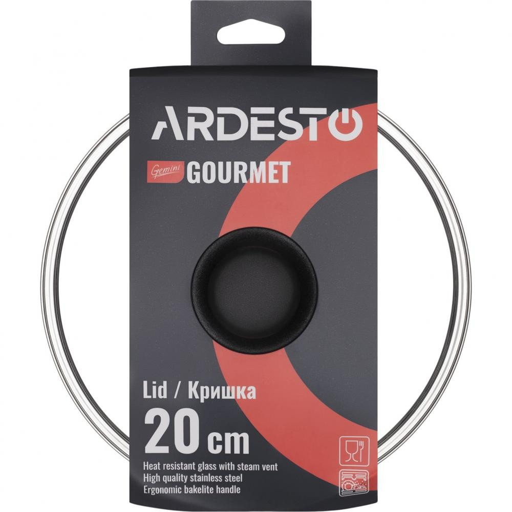 Кришка ARDESTO Gemini Gourmet 20 см, скло, нержавіюча сталь, бакеліт