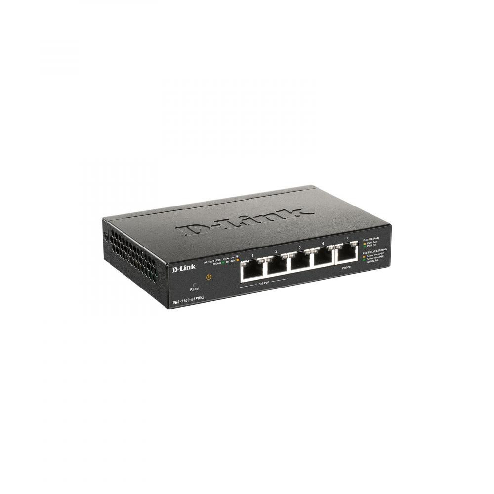 Комутатор D-Link DGS-1100-05PD 5xGE, (2xGE, 2xGE PoE, 1xGE PD), EasySmart