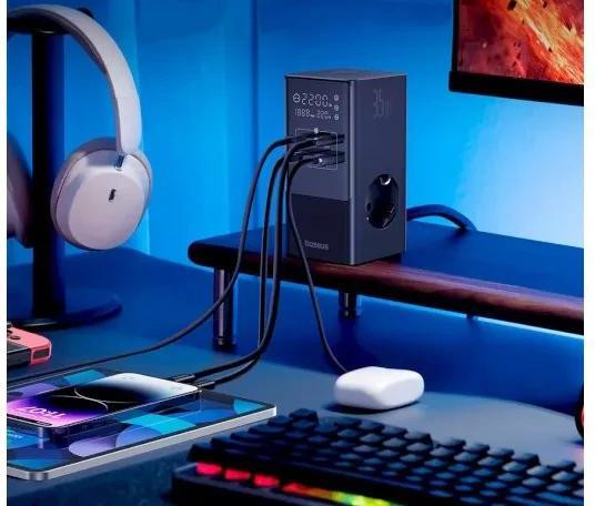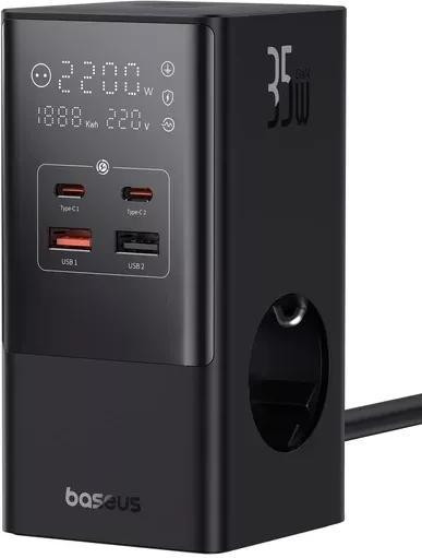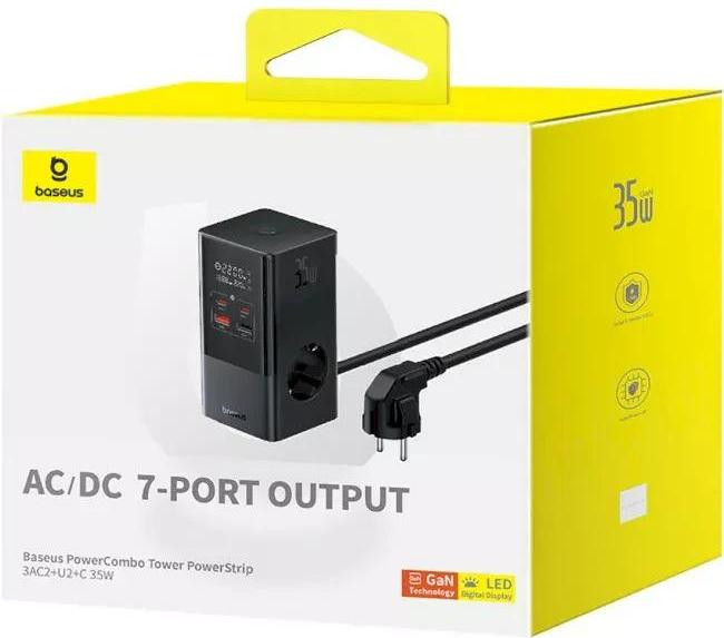 Мережевий зарядний пристрій Baseus PowerCombo Tower Digital PowerStrip 3AC+2U+2C 35W with 1.5m Power Cord EU Cluster Black