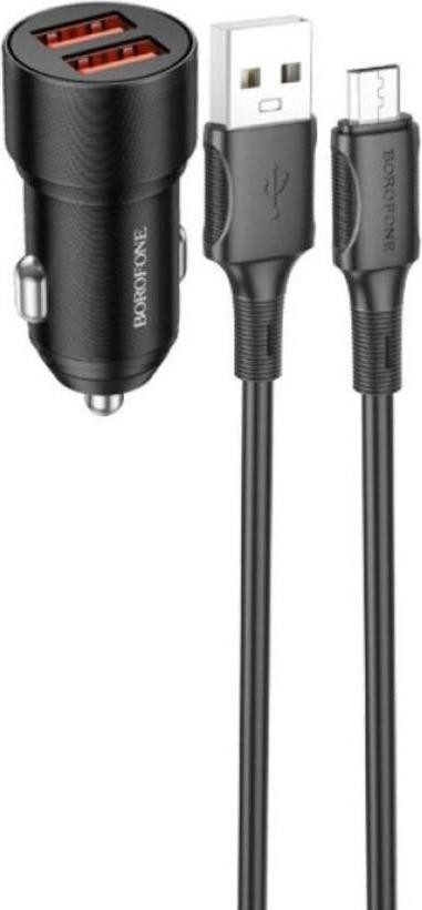 АЗП BOROFONE BZ19B Wisdom 36W dual port QC3.0 car charger set(Micro) Black