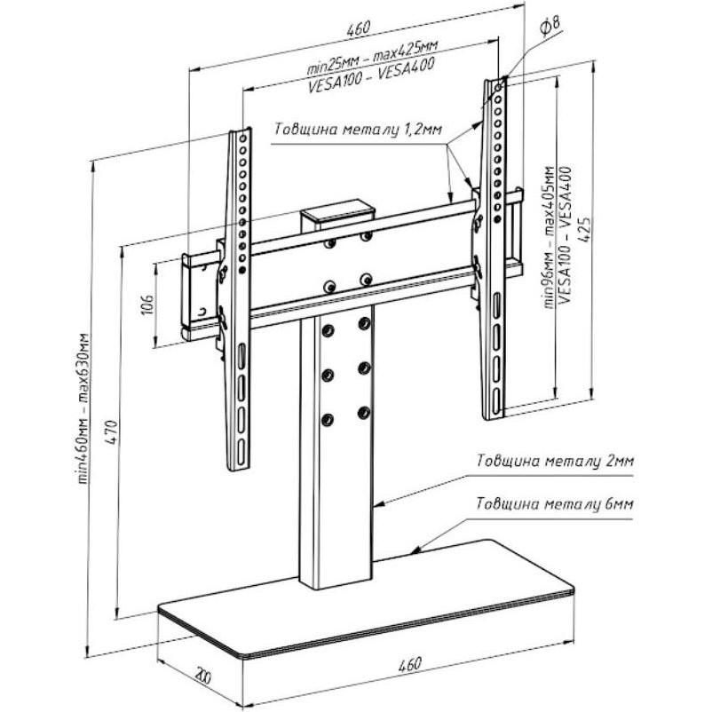 Максимальне навантаження стільниці/кріплення, кг