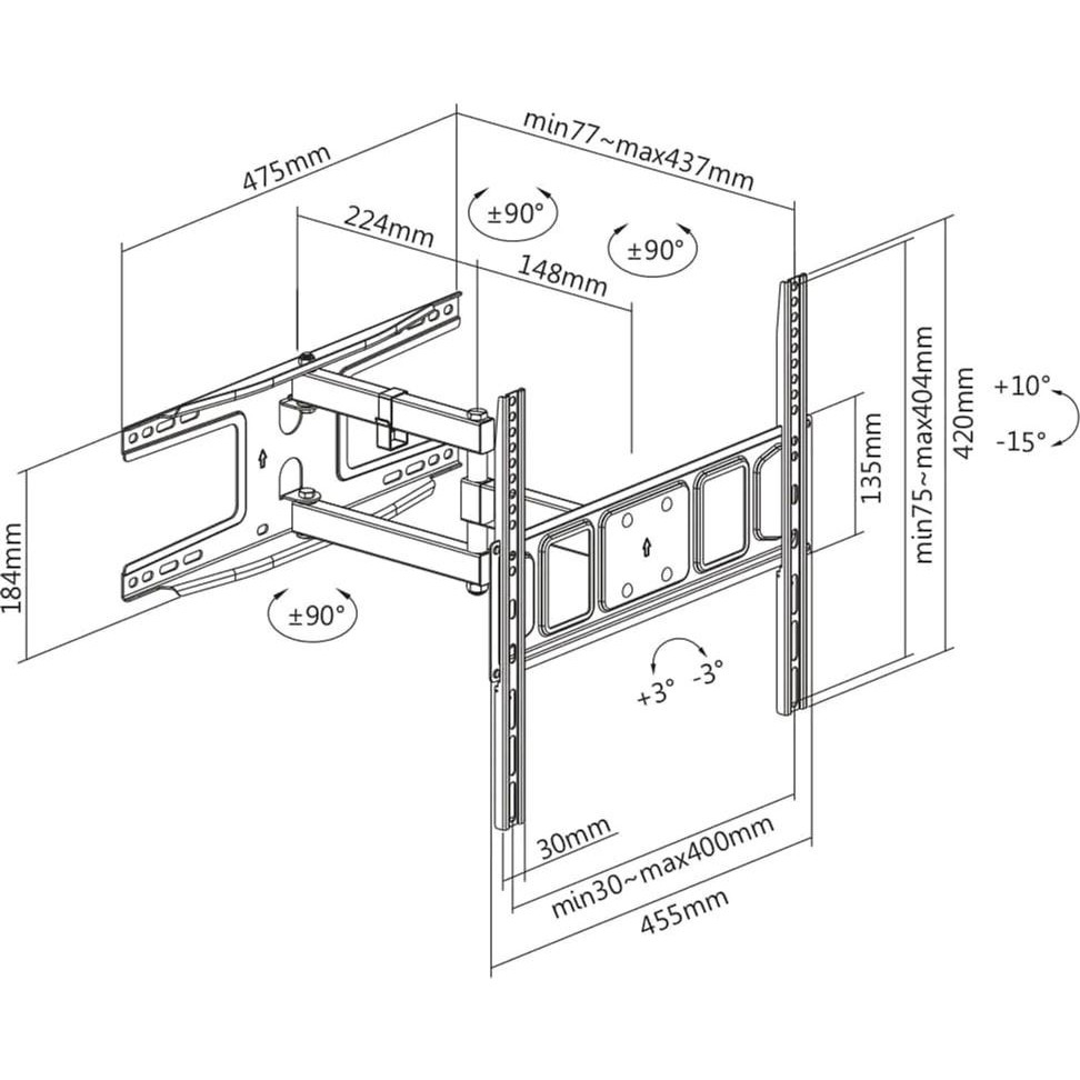 Кронштейн UniBracket BZ23-43, 13-32, до 8 кг, VE SA від 200x200 до 400x400Кут нахилу: :-15°~+10°, BZ23-43