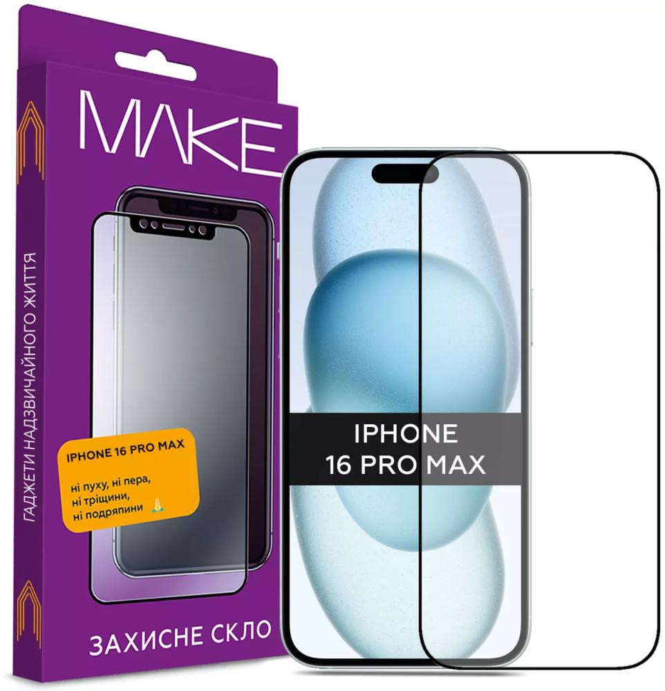 Захисне скло Make для Apple iPhone 16 Pro Max, Black