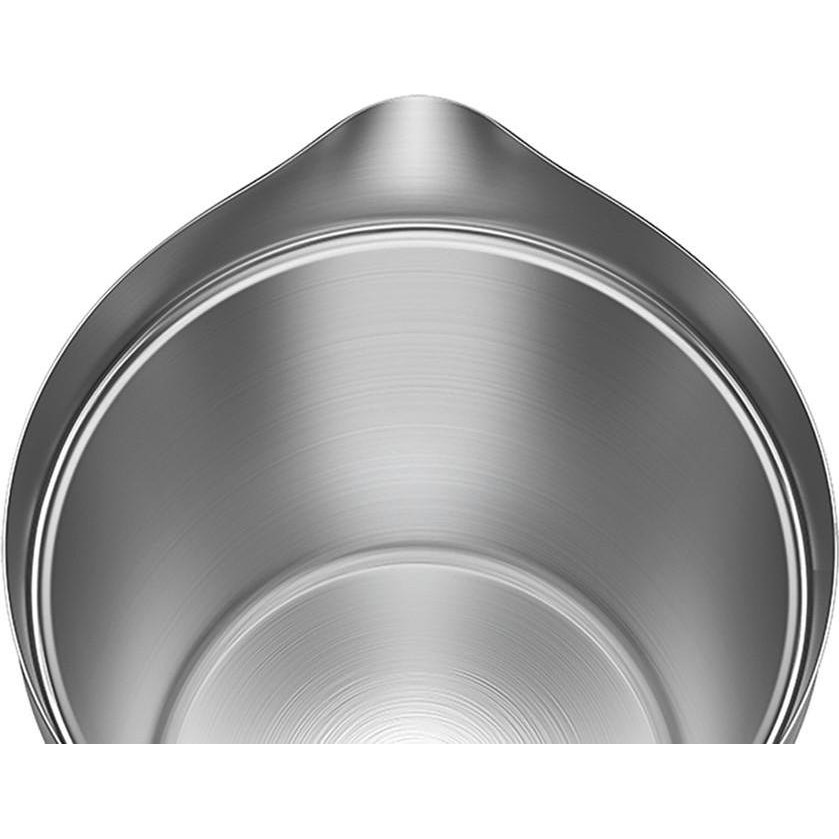 Електрочайник MiJia Smart Kettle Pro White (MJHWSH02YM) випускається в сучасному дизайні в стильному ніжно-білому кольорі. Його корпус складається з двох шарів: внутрішній виготовлений з нержавіючої сталі марки 204, а зовнішній - з високоякісного ABS пластику. Модель обємом 1,5 літри обладнана дисковим нагрівальним елементом потужністю 1800 Вт. Вона встановлюється на підставку з відсіком для зберігання шнура живлення, на якій вільно обертається на 360 градусів. Прилад оснащений надійним і довговічним термостатом Strix, за допомогою якого дозволяє виконувати нагрів до заданої температури і підтримувати її протягом 12 годин. Відкидна кришка пристрою фіксується під час роботи, а відкривається натисканням кнопки на ергономічній ручці. Крім того, ручка оснащена OLED дисплеєм, де відображається реальна температура рідини, і двома кнопками. Електрочайник MiJia Smart Kettle Pro White (MJHWSH02YM) може включатися по команді зі смартфона через інтерфейс Bluetooth 4.0 BLE. Він захищений від перегріву і автоматично відключається при закипанні і знятті з основи.