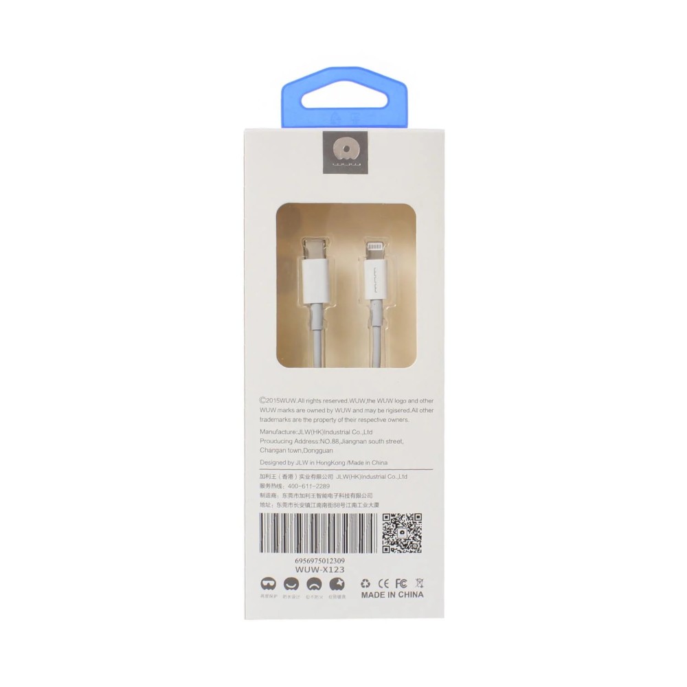 Кабель USB WUW X123 USB-C to lightning 1m quick charge white