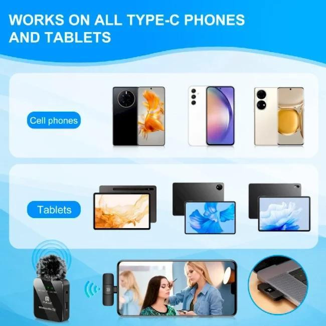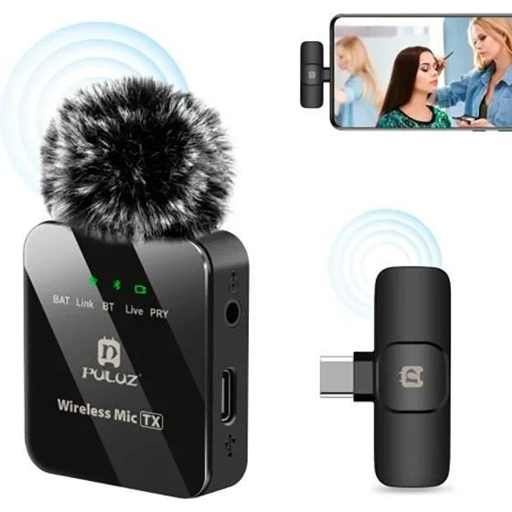 Бездротовий петличний мікрофон PULUZ для телефону, приймач Type-C (чорний)