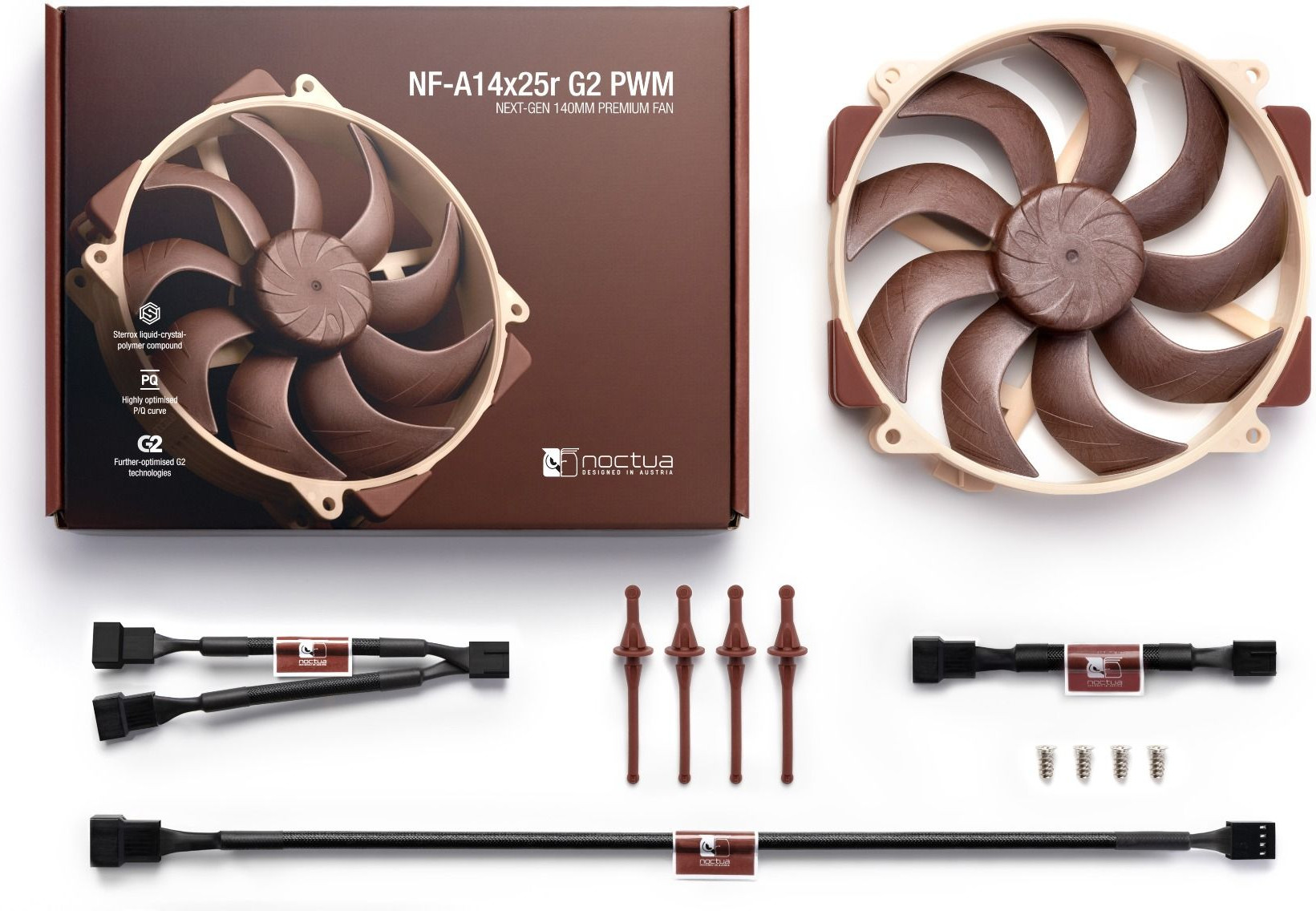 Вентилятор для корпусу Noctua, 140мм, SSO2, 1250-1500 об/хв, 24.8 дБ, 12V, 4pin, PWM (NF-A14x25r G2 PWM)