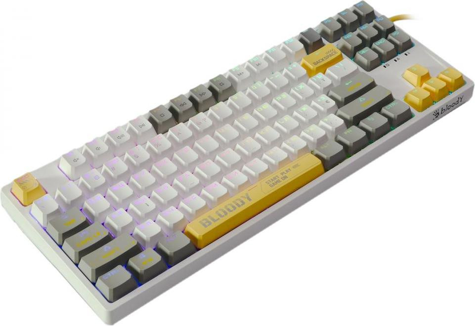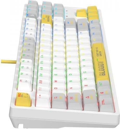 Клавіатура ігрова, дротова A4Tech Bloody S87 (Energy White), USB, механічна, червоні світчі, RGB підсвічування клавіш, біла