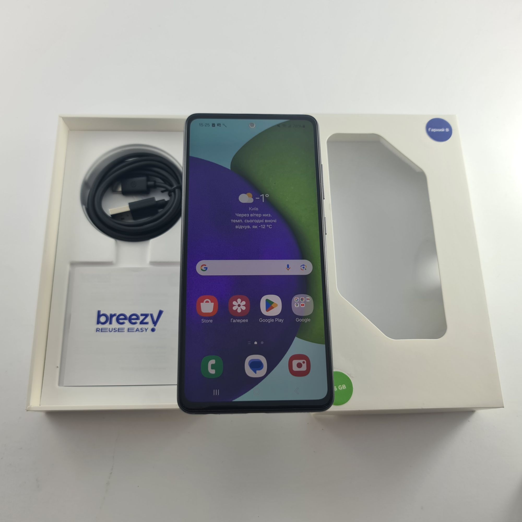 Стан: пристрій у хорошому стані; Функціонал: пристрій протестований, всі функції працюють справно; Дисплей: одиночні мікроподряпини (до 3); Корпус: незначні подряпини, точкові сколи; Комплектація: кабель usb-a to usb-c, фірмова еко коробка ; Гарантія: 12 міс.;