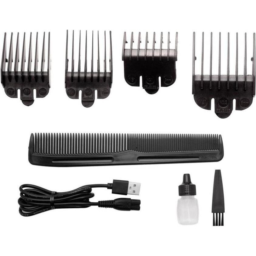 4 змінні насадки (3, 6, 9, 13 мм), гребінець, флакон з маслом, USB-кабель для заряджання